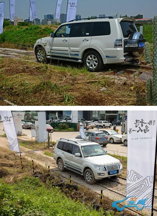 为了让媒体朋友更加直观的感受2019款帕杰罗的越野性能,主办方还设置一块模拟达喀尔赛场复杂的地形的场地,试驾项目分别有滑轮组、轮胎阵、交叉轴、侧滑坡、涉水路、炮弹坑,让大家亲身试驾感受新车的全地形驾驭能力。