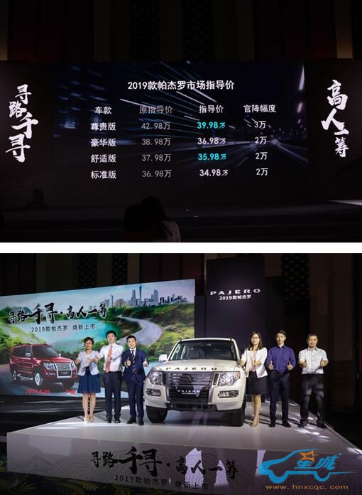2019款帕杰罗区域媒体发布会广州站在广州长隆酒店盛大举行,新车共计推出4款配置版本,官方指导价34.98万元-39.98万元,顶配版车型相比2018款,降幅达到3万元,其余车型降2万元。