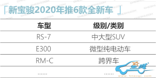 2019年4月份,新宝骏正式推向市场,在不到一年的时间里,连续上市了RS-5、RC-6、RM-5以及RS-3。2020年,新宝骏的产品投放节奏依旧很快。小编日前了解到,2020年,新宝骏还将推出6款全新车,全面覆盖SUV、跨界车以及轿车板块。从此前曝光的信息来看,其中包括RS-7、RM-C以及E300。