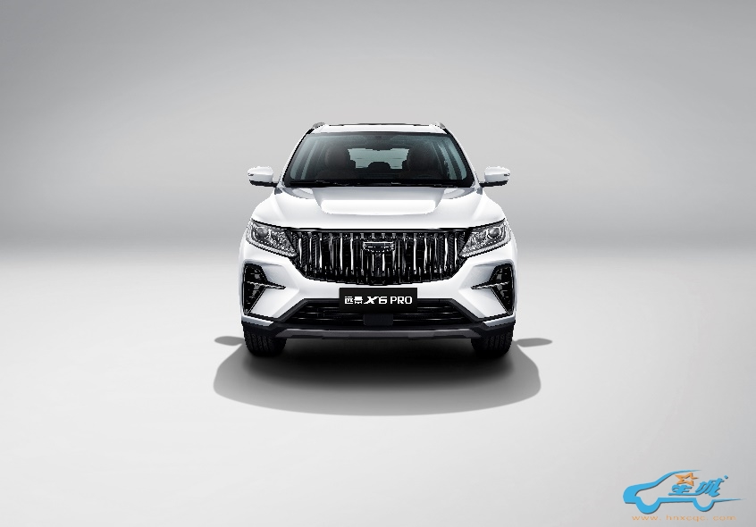 前脸部分,远景X6 PRO采用动感硬朗前脸设计,其中特别吸睛的是能量音弦前格栅造型,采用上下咬合式造型设计,与熏黑LOGO相融合,视觉效果更具立体感、运动感。同时,前脸采用无边框大面积进气口设计,大灯与格栅相连,形成一体式造型,整体感更强。战翼式前保险杠采用棱角分明的型面与富有张力的线条,配合直瀑式前脸造型,使得新车更显动感与霸气。