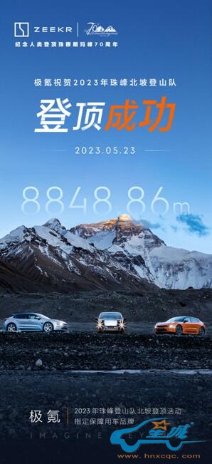 【2023年5月23日杭州】挑战地球之巅,人类脚步从未停止。5月23日上午10点36分,2023珠峰北坡登山队成功登顶!极氪作为2023年珠穆朗玛峰登山队北坡登顶活动指定保障用车品牌,为此次登顶之旅提供坚实保障,展现了中国新能源汽车的实力和水平。