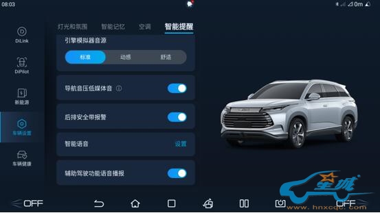 此外,护卫舰07时钟屏保新增显示应用信息。当车机进入屏保显示状态后,在左侧可以显示运行应用的相关信息,方便用户查看。其还新增了后排安全带报警开关,若后排放置物品时可单独关闭后排安全带报警。