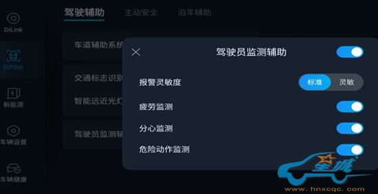 配置上,DMS驾驶员监测辅助功能在声音、界面的提醒上都进行了强化,仪表显示、提示音、提示语都更生动,并且新增了报警灵敏度选择,可有效提升行车安全性。