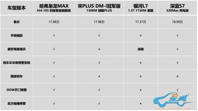 综合来看,四款车在性能配置上都有自己的优势,但哈弗枭龙MAX的性能更加出色,更能满足多种用车需求。如果是追求动作和驾驶操控的用户,那哈弗枭龙MAX的确是不能错过的选择,15万左右的预算就可以感受电四驱驾控乐趣。