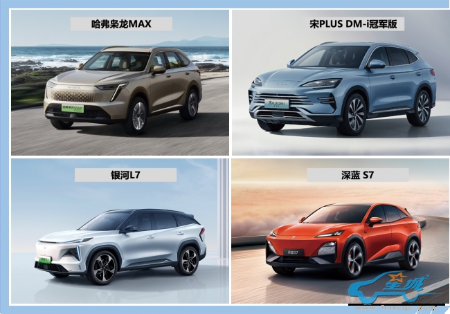 15万左右,买台好开省油使用成本低的SUV,混动车型是不错的选择,既可以加油跑又可以纯电行驶,混合动力模式下还能做到低油耗,而且15万元左右的价格大部分消费者都可以承担的起。这期就给大家推荐四款自主混动SUV,分别是哈弗枭龙MAX、比亚迪宋PLUS DM-i冠军版、吉利银河L7、深蓝S7,希望为您的购车提供参考。