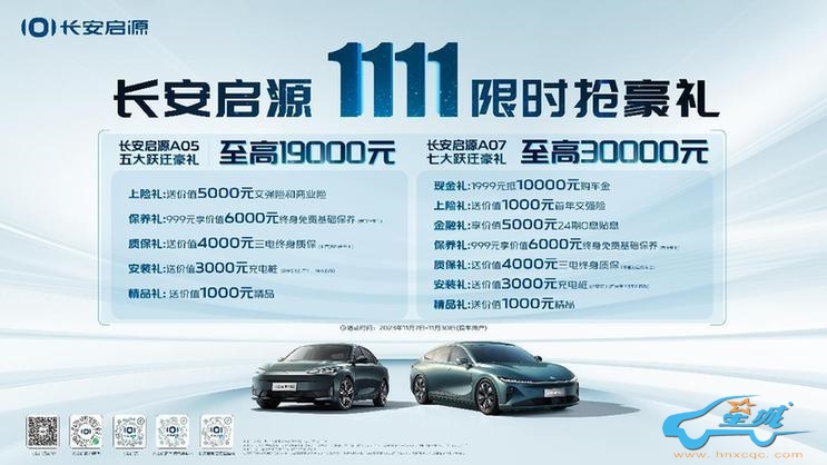 11月7日—11月30日,购长安启源A05立享五大跃迁豪礼,至高19000元!内容包括: