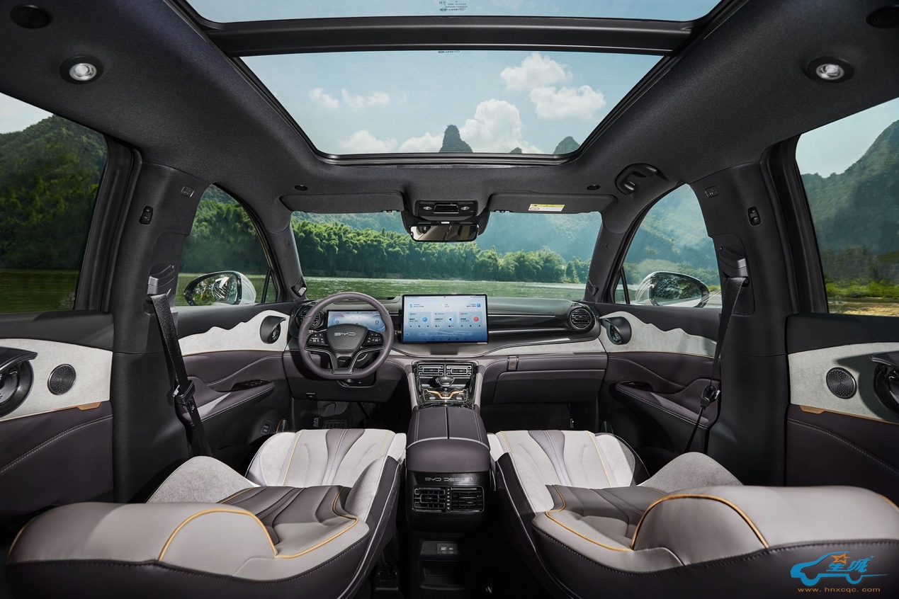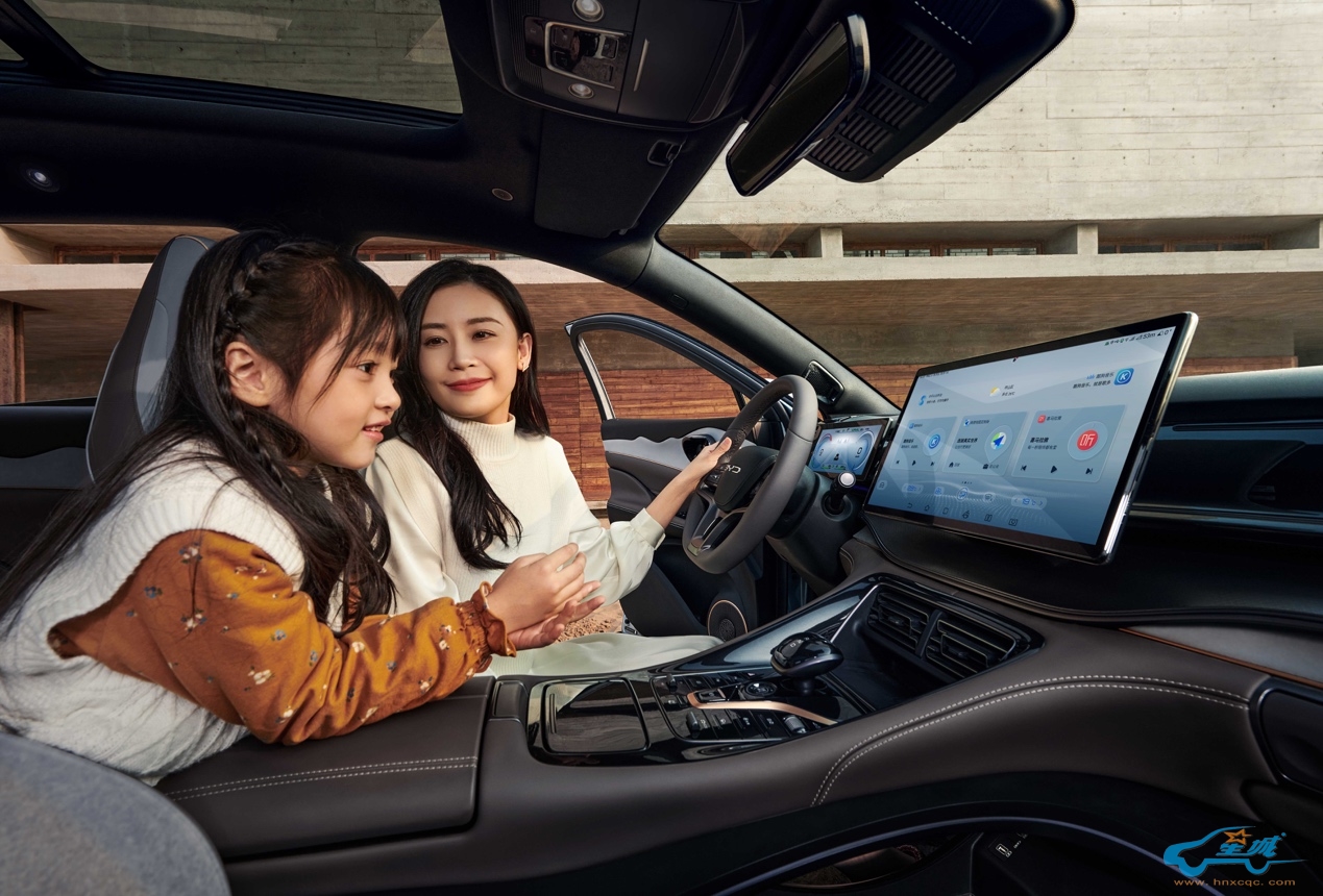 护卫舰07全系标配DiLink 15.6英寸自适应旋转悬浮Pad,可横可竖,一些适合竖屏的软件也可完美适配。再就是操作流畅,界面更加扁平化,常用功能整合在下方或者下拉菜单里面,非常实用。系统的语音控制支持四音区唤醒,后排的孩子可以随时下指令,非常方便。连续对话的功能也很人性,20秒内可以下达多个指令,避免了反复唤醒的多余操作。