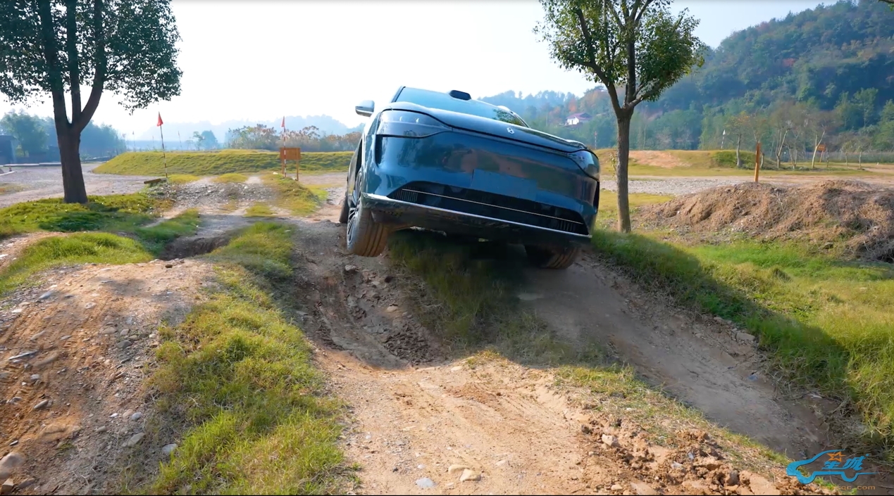 在越野过程中,以交叉轴和湿滑路段等路段为例,这种工况下十分考验车辆的扭矩分配能力。传统燃油车动力分配过程步骤繁琐,从发动机到变速箱,再经过传动轴传导到轮胎,不可避免的会造成动能消耗。同时,由于机械四驱等结构原因,传统燃油车的扭矩控制并不精准。