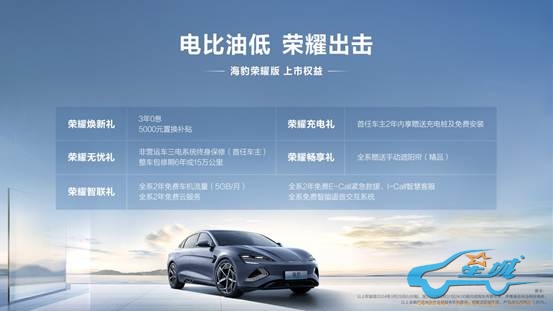即日起至3月31日,订购海豹荣耀版的用户可享包括金融补贴、维修保养、车机流量等在内的多重超值好礼。