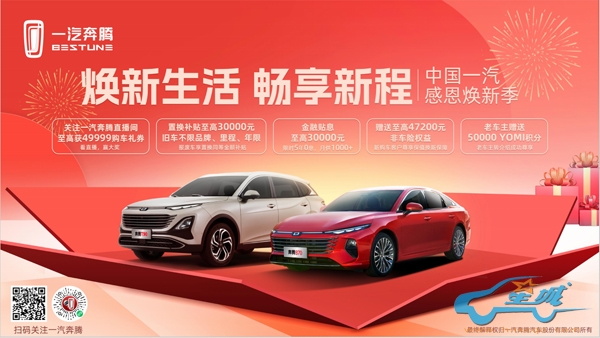 全面领先的产品价值之外,奔腾B70龙腾版还可享受多重优惠购车政策。龙腾上新四大购车礼,金融、置换、质保、流量四重优惠全覆盖,贷款贴息至高11000元。同时,响应国家以旧换新号召,在中国一汽开展的“感恩焕新季”专项活动中,一汽奔腾福利加码,推出“焕新生活畅享新程”优惠购车政策,全系车型旧车置换、新车首购,可享受大额购车礼券、置换补贴、非车险权益、金融贴息、YOMI积分五大福利,至高可享30000元置换补贴,国民好车诚意拉满。