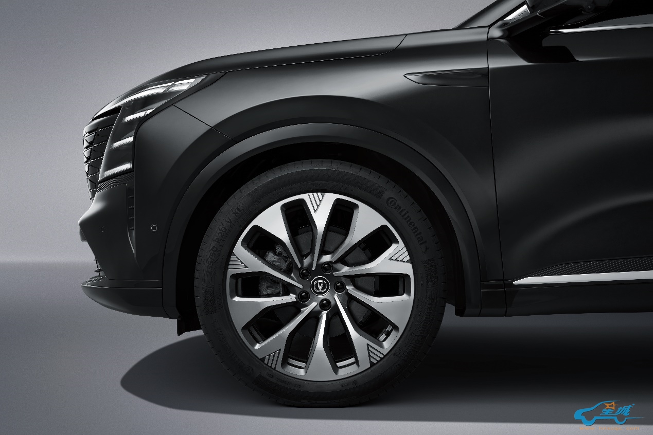 不仅如此,围绕“轻载货”场景下的用户需求,第四代CS75PLUS Ultra还采用了更具力量感的20寸轮毂,并全系标配抓地力更强、耐磨性更高的马牌235/50 R20轮胎。车尾采用双边四出真排气设计,以更个性的运动元素彰显了自身强悍性能。