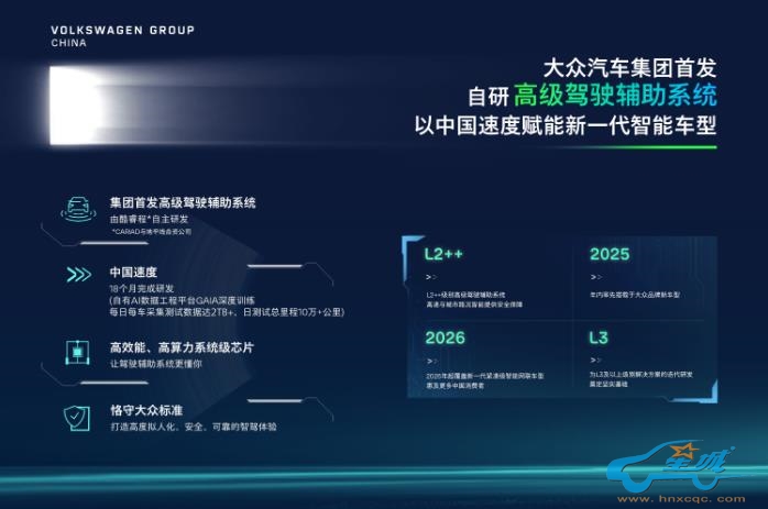 【2025年4月17日,北京】大众汽车集团今日宣布,将于本届上海车展首次发布由中国团队研发,专为中国复杂多样的路况量身打造的高级驾驶辅助系统。该系统由AI赋能、具有自主学习能力,能够为驾驶者提供高度拟人化、多场景覆盖、并以安全为先的驾驶辅助体验。该系统将在今年率先搭载于一款面向中国市场的大众品牌新车型,并计划于明年起进一步应用到基于CMP平台开发的全新智能网联车型,满足更多主流紧凑型细分市场消费者需求。