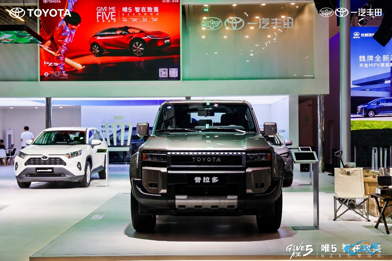 本次车展,一汽丰田最吸睛的车型当属新近上市的全新bZ5,在展台中央的bZ纯电专区,一款款颜色各异的bZ5有序陈列。该车定位“丰田超感时空舱”,具有全角度颜值、全守护安全、全沉浸智舱、全路况驾驶辅助、全保障QDR五维核心价值;首推550 JOY版、550 PRO版、550 PRO智行版、630 PRO版共计4个版本,官方售价12.98万-15.98万元;并提供综合价值最高达3.8万元的8重大礼;上市即热销,是当之无愧的合资爆款纯电产品。