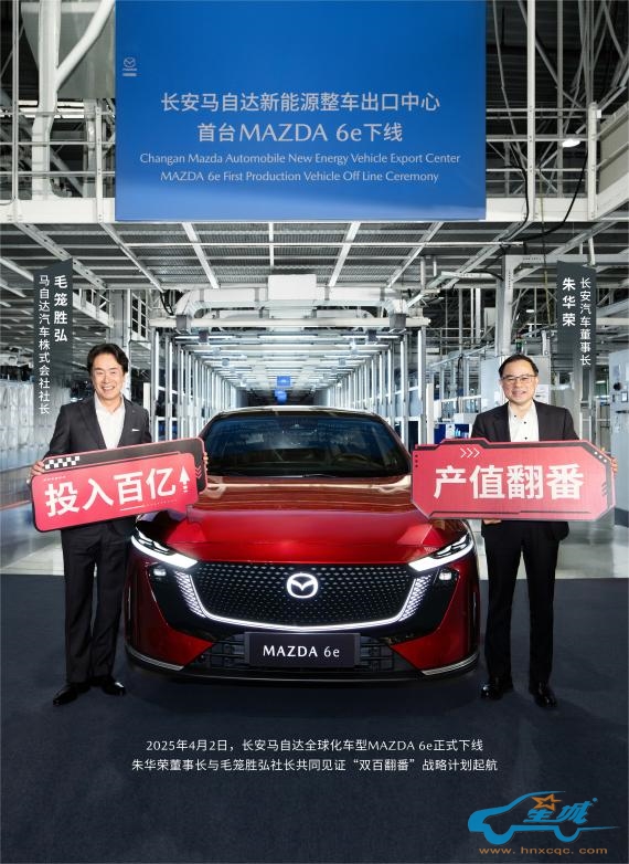 今年4月2日,长安马自达首款全球化车型MAZDA 6e成功下线,“双百翻番”战略计划同步发布。长安汽车董事长朱华荣对此给予高度评价:“一直以来,长安与马自达始终保持着良好的战略合作关系,在战略诉求和经营理念上充分互信,在产品技术和全球化拓展上开放共享,不断探索合资合作的新生态”。两家百年车企的联手,让“全球资源共享,中国技术反哺”的全新合作模式快速落地。在新能源领域投资额百亿、出海贸易额百亿,实现企业产值翻番——“双百翻番”战略的发布,是长安马自达在合资新能源时代吹响全面进击的号角,坚定了长安马自达深耕中国市场的信心与恒心。