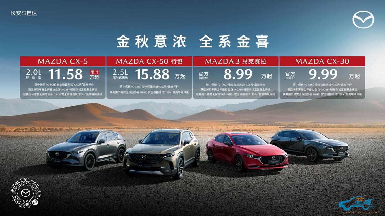 秋意渐浓,长安马自达9月购车全系送“金”喜:新能源中型SUV弯道王MAZDA EZ-60全面到店,实车试驾开启;全球车MAZDA EZ-6至高享5万元购车补贴以及最长6年0息金融购车方案;次世代MAZDA3昂克赛拉、MAZDA CX-5、MAZDA CX-50行也、MAZDA CX-30等燃油车型补贴持续放送,以全系安全全优的产品阵容满足多元购车需求。