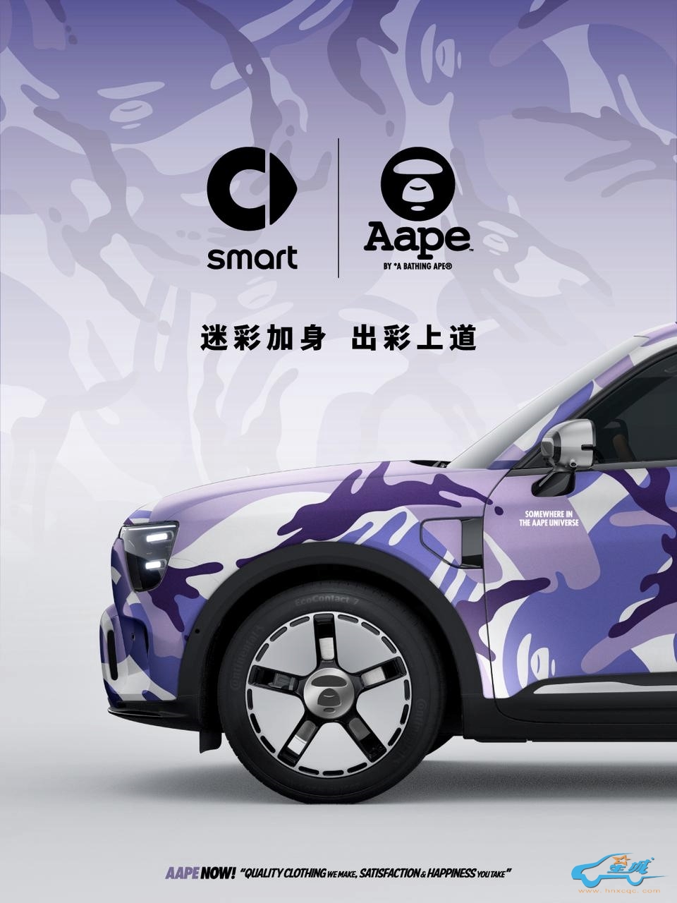 (2025年10月16日,杭州)近日,全球新奢智能电动汽车品牌smart与国际街头潮流品牌达成首次合作,联合打造紫色迷彩联名版smart #5,并于上海高端地标环贸iapm启幕“AAPE×smart限时主题空间”,以先锋科技碰撞潮流基因,正式开启双方共创共赢的新征程。